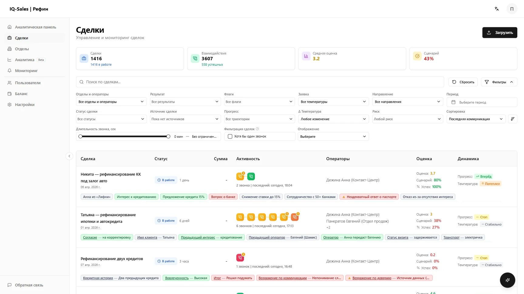 - Больше не нужно вручную искать причины в CRM и прослушивать звонки — система сама показывает, где действовать и как улучшить конверсию.